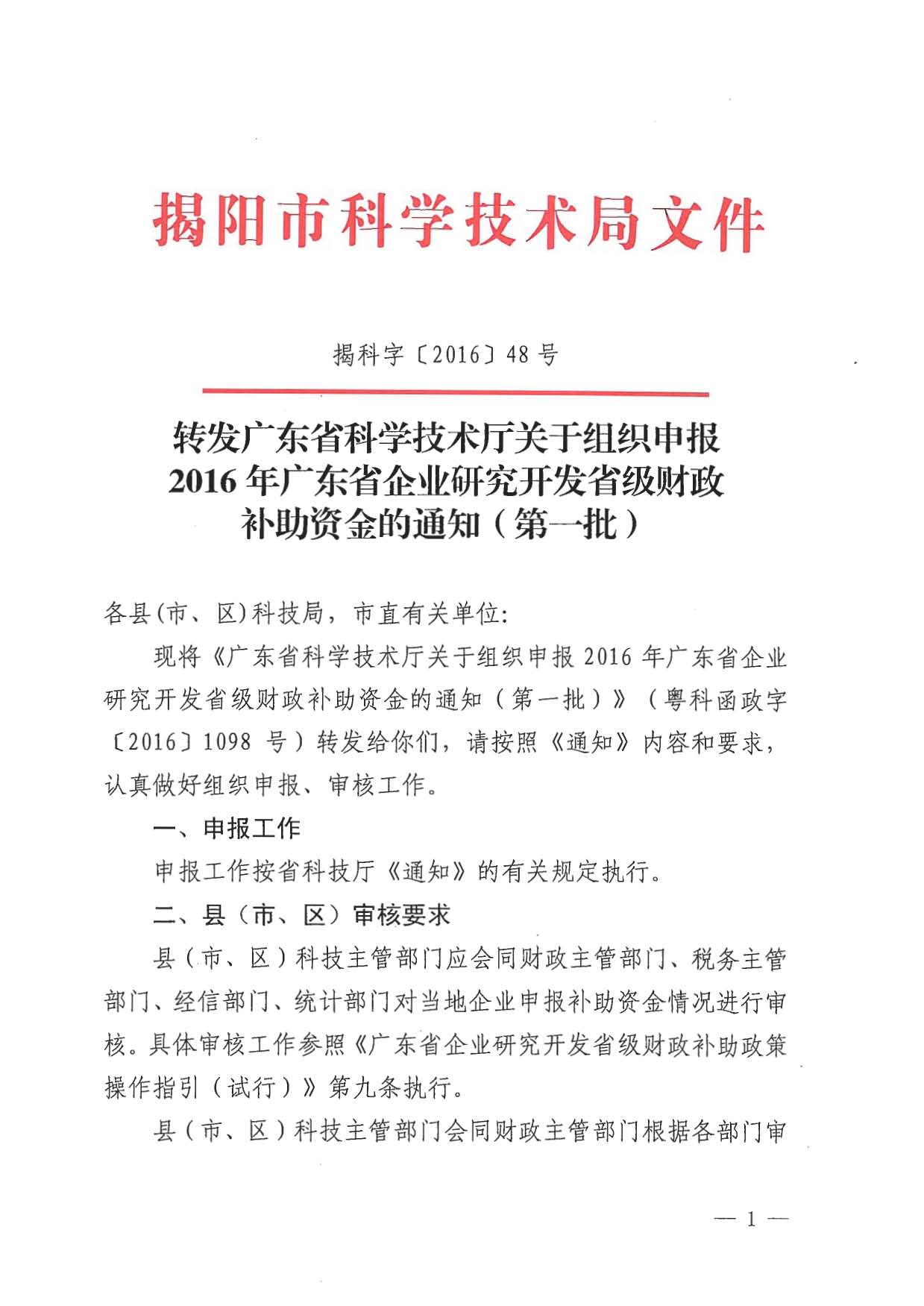 转发广东省科学技术厅关于组织申报2016年广东省企业研究开发省级财政补助资金通知(第一批)